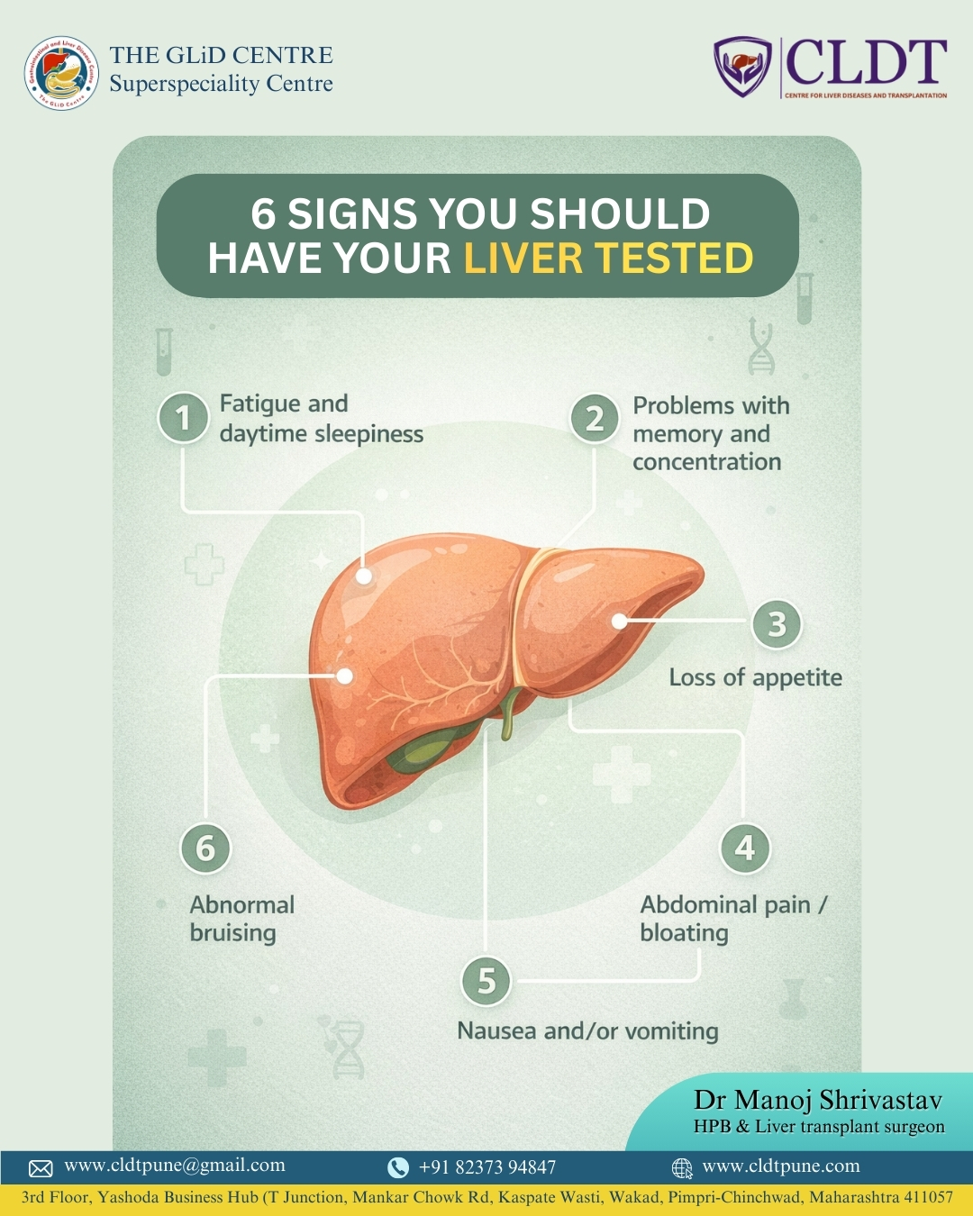 At CLDT, we understand the complexities and challenges associated with liver diseases and transplantation. Led by a team of highly skilled and experienced specialists, including Dr. Manoj Shrivastav renowned HBP (Hepato-Biliary-Pancreatic) and Liver Transplant Surgeon in Pune and Dr. Sushil Kumar Yadav – Anesthesia & Critical Care Physician., we offer a multidisciplinary approach to diagnosis, treatment, and postoperative care.